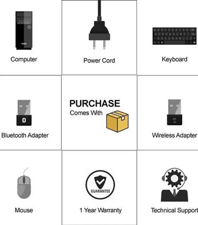 | Package Contents | Computer, Power Cord,USB Mouse & Keyboard, USB WIFI Adapter, USB Bluetooth Adapter, Warranty Instruction |