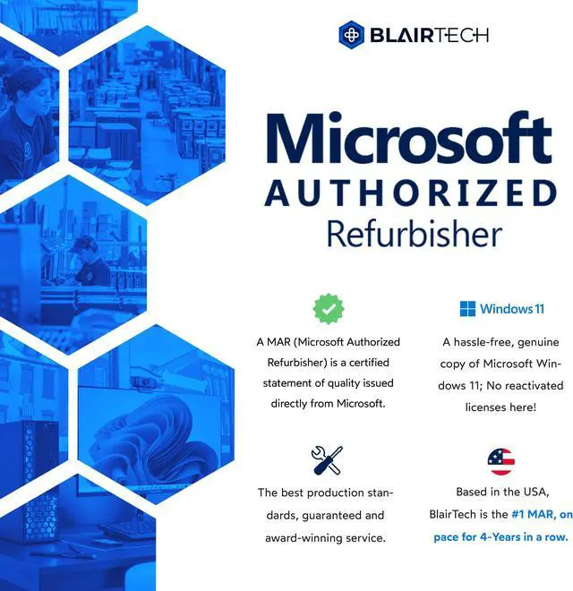 MICROSOFT AUTHORIZED REFURBISHED Your Desktop comes with a digitally rendered Windows 11 Professional install for a secure and convenient setup process. Every computer from us is professionally renewed through a set of globally recognized and top-tier production processes, including a full-system test, a fresh install of Windows 11 Professional, and robust stress-testing.