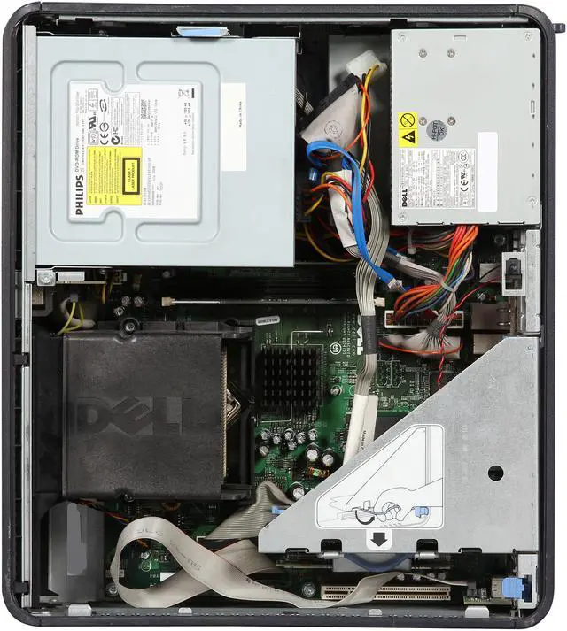 Dell’s standard BTX chassis design, power supply and motherboards are designed for thermal efficiency, providing improved reliability and quieter operation compared to previous OptiPlex models.