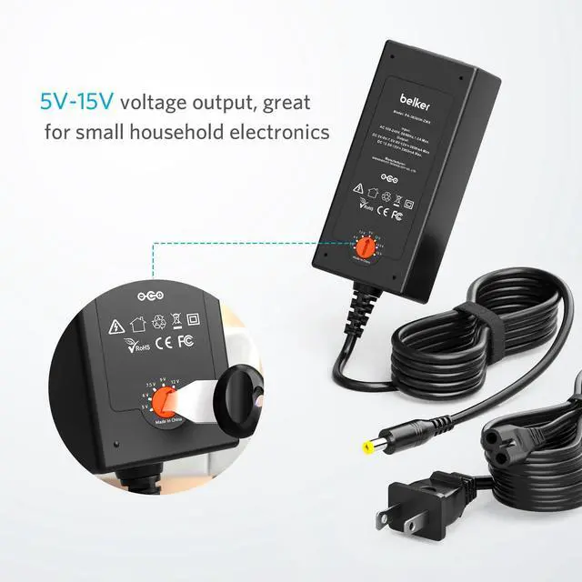 Belker universal power adapter plug adjustable transformer replacement AC 120v 60hz 15V 13.5V 12V 5V 6V 7.5V 9V