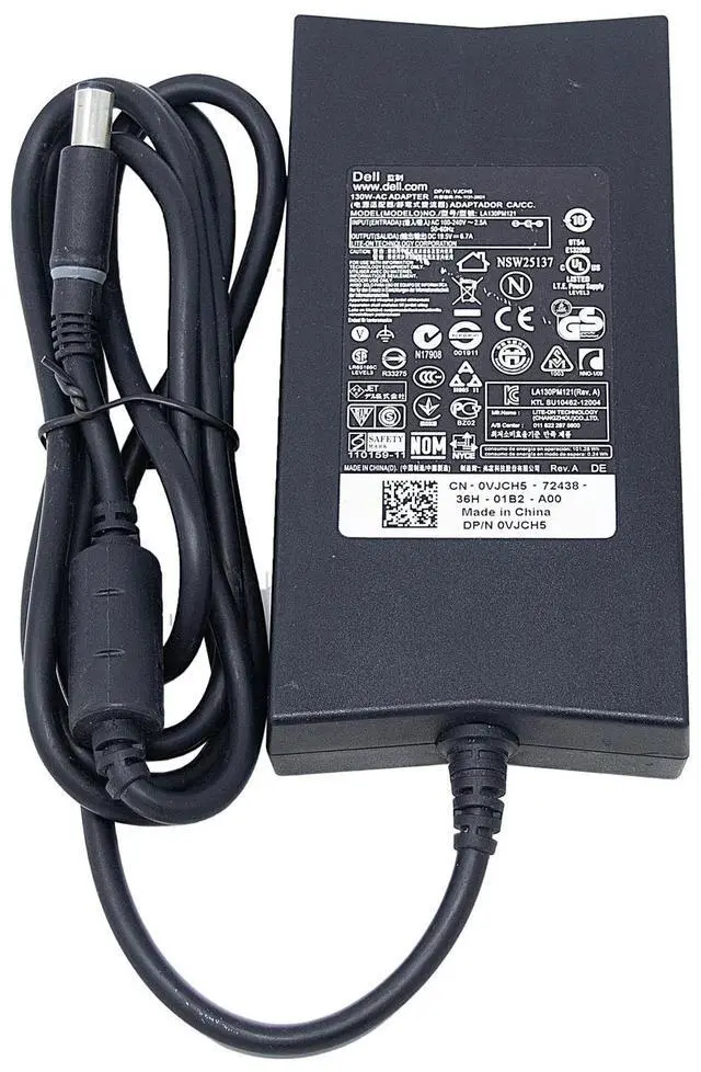 Power your compatible Dell laptop reliably with this genuine Dell 130W AC Adapter. Designed for Dell XPS and Latitude series laptops, this 19.5V charger delivers stable, high-efficiency power for seamless productivity and fast charging. Features universal 100-240V input for global travel, built-in surge protection, and a durable 6-foot cable. Ideal replacement for lost/damaged chargersensure peak performance and safety for your Dell device.