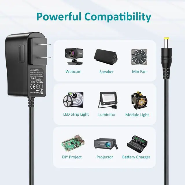 Application-- LED Strip Lights / Cable Modem / Router / Electronic Piano Keyboard / DVR NVR Surveillance System / Security CCTV Camera / Infrared IR Array Illuminator / Portable Radio / Computer PC Case Fan / Motor / Arduino PCB Design / Computer Speakers / Digital Photo Frame / External Hard Drive / Foot Back Neck Shoulder Massager / Fresh Water Bilge Air Pump / and other 24 VDC devices