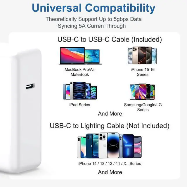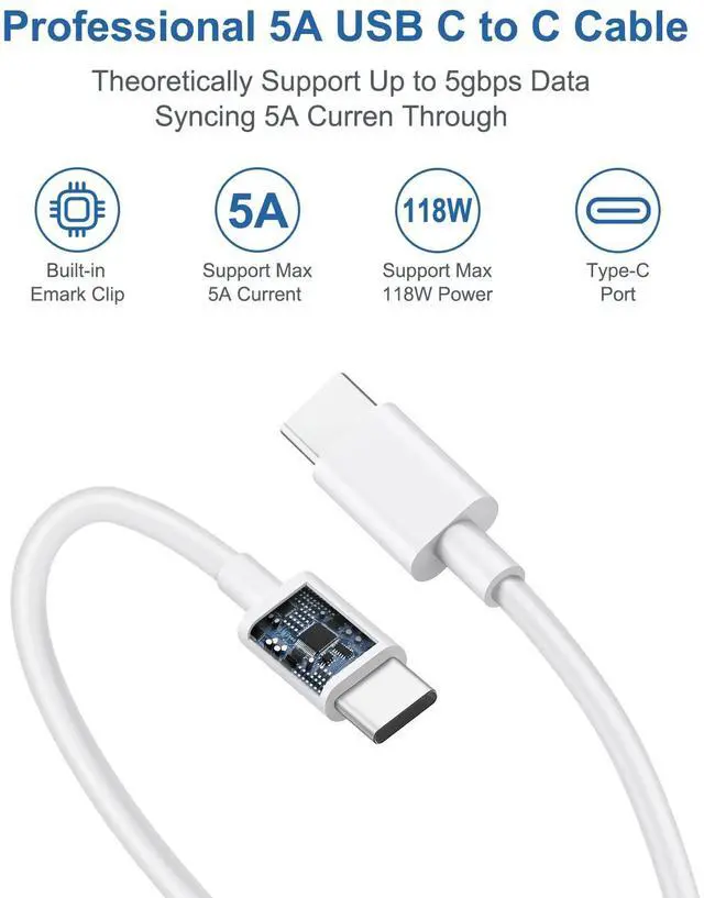 Built-in e-Mark chip and reinforced with thicker copper wire. Delivers Max 5A/120W power via intelligent output that dynamically adjusts current flow to match your device’s requirements. Engineered for safety, speed, and long-lasting performance.