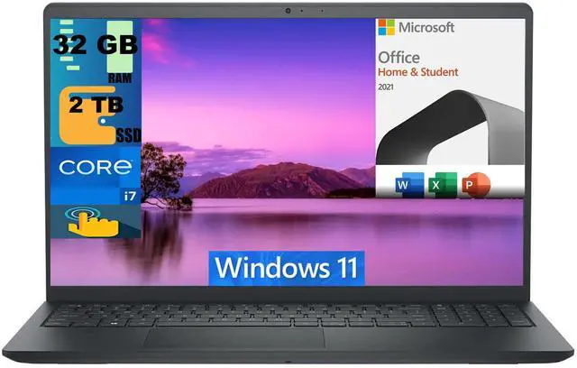 Dell Inspiron 15 Laptop, 15.6" FHD (1920 x 1080) Touchscreen, Intel Core i7-1165G7 4 Cores Processor, Intel Iris Xe Graphics, 32GB DDR4 2TB PCIe SSD, Webcam, Windows 11,Microsoft Office License