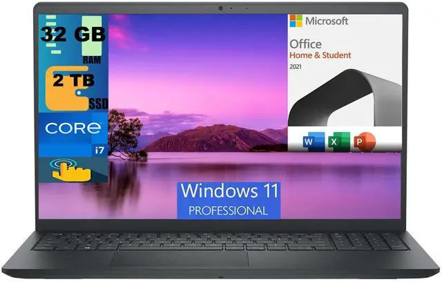 Dell Inspiron 15 Laptop, 15.6" FHD (1920 x 1080) Touchscreen, Intel Core i7-1165G7 4 Cores Processor, Intel Iris Xe Graphics, 32GB DDR4 2TB PCIe SSD, Webcam, Windows 11 Pro,Microsoft Office License