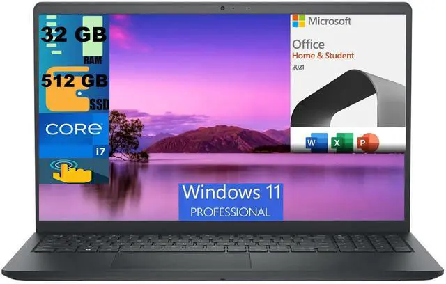 Dell Inspiron 15 Laptop, 15.6" FHD (1920 x 1080) Touchscreen, Intel Core i7-1165G7 4 Cores Processor, Intel Iris Xe Graphics, 32GB DDR4 512GB PCIe SSD, Webcam, Windows 11 Pro,Microsoft Office License