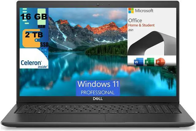 Dell Inspiron 15 Laptop, 15.6" HD Display, Intel Celeron N4020 Dual-Core Processor, Intel UHD Graphics, 16GB DDR4 2TB PCIe SSD, Wi-Fi and Bluetooth, Windows 11 Pro,Microsoft Office License
