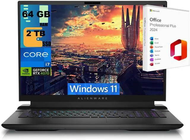 Alienware M18 Gaming Laptop, 18" QHD+ 165Hz, Intel Core i7-13700HX 16 cores Processor, NVIDIA GeForce RTX 4070 8GB GDDR6 Graphics, 64GB DDR5 2TB PCIe SSD, Windows 11 ,Office 2024 License