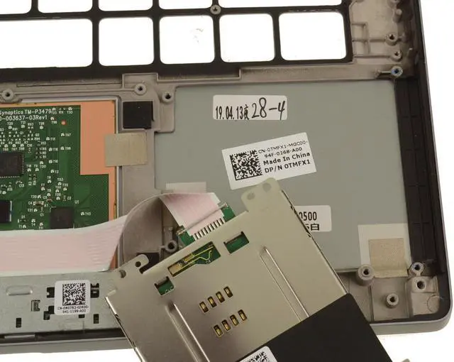 Dell Latitude 7300 laptop Palmrest Touchpad Assembly. Includes the Touchpad module and Smart Card reader. For systems with the optional Aluminum finish.