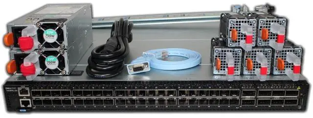 Switch Includes: 2 x Hot-swappable 750W AC Standard Airflow (I/O to PSU) PSUs. 5 x Hot-swappable Standard Airflow (I/O to PSU) Fans. ReadyRails kit included.