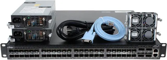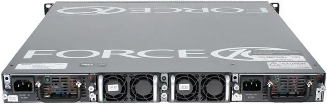 NOTE: Some switches may be black (Dell branded) or gray (Force10 branded) based on age. The Force10 branded units function identically to the Dell branded units. Switch Includes: 2 x 350W AC Reverse Airflow (PSU to I/O) PSUs. 2 x Reverse Airflow (PSU to I/O) Fans. Rack mounts included.