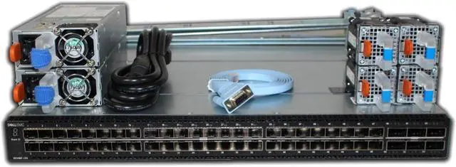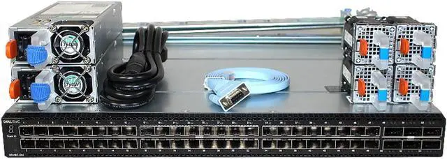 Switch includes: 2 x Hot-swappable 750W AC Reverse Airflow (PSU to I/O) PSUs. 4 x Hot-swappable Reverse Airflow (PSU to I/O) Fans. ReadyRails kit included.