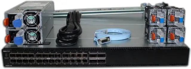 Switch includes: 2 x Hot-swappable 750W AC Reverse Airflow (PSU to I/O) PSUs. 4 x Hot-swappable Reverse Airflow (PSU to I/O) Fans. ReadyRails kit included.