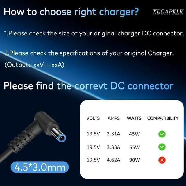 Compatibility 1 XDOAKPLK charger compatible wth HP Pavilion Sleekbook 14-b000: HP Pavilion Sleekbook14-b000ed 14-b000ee 14-b000ei 14-b000eo 14-b000et 14-b001ea 14-b001eia 14-b001tx 14-b002tx 14-b004tu 14-b005au 14-b006au 14- b007au 14-b008au 14-b009au 14-b009tu 14-b010au 14-b010us 14-b012au 14-b013au 14-b014au 14-b014tu 14-b015au 14-b015dx 14-b022au 14-b023tx 14-b024tu 14- b025tu 14-b028au 14-b028tu 14-b030tu 14-b031tu 14-b034tu 14-b035tu 14-b038tu 14-b043tu 14-b062la CTO 14z-b000 Compatibility 2 XDOAKPLK charger compatible wth HP Pavilion 14: HP Pavilion 14-ce0501sa 14-ce0084tx 14-ce3064st 14-cd1055 14-bk091st 14-f002la 14-f023cl 14m-ba114dx 14m-cd0003dx 14-n007la 14-v002la Compatibility 3 XDOAKPLK charger compatible wth HP Pavilion 15: HP Pavilion 15-b119sl 15-b119ss 15-b120sw 15-b120us 15-b123es 15-b123nr 15-b123ss 15-b124sl 15-b125sb 15-b125sl 15-b128el 15-b128es 15-b129el 15-b129es 15-b130eb 15-b130sc15-b130sw 15-b131el 15-b135ea 15-b140el 15-cs0052cl 15-bw001cy 15-bw001ds 15-bw002cy 15-bw002ds 15-bw007ca 15-bw007cy 15-bw008cy 15-bw009ca 15-bw009cy Compatibility 4 XDOAKPLK charger compatible wth HP Pavilion 17 Pavilion 10: HP Pavilion 17-f020us 17-f024nr 17-e107nr 17-e109nr 17-e108nr 17-e049wm 17-bs001cy 17-bs001ds 17-bs002ds 17-bs010ds 17-bs010nr 17-bs011cy 17-bs011ds 17-bs016ds 17-bs017cy 17-bs017ds 10-e010nr 10-e011la 10-e013la 10-e019nr 10-e020ca Compatibility 5 XDOAKPLK charger compatible wth HP Pavilion TouchSmart: HP Pavilion TouchSmart 15-ay013dx 15-n210us 15-n210dx 15-n211dx 15-n220us 15-n228us 15-n230us 15-n240us 15-n260us 15-n280us 15-n290nr 15z-n200 15-f111dx 15-f211wm 15-bs0xx 15-f272wm 15-CS0XXX 15-1272wm 14-ax010wm 15-au018wm Compatibility 6 XDOAKPLK charger compatible wth HP Pavilion x2: HP Pavilion 11-h110nr 11-h010ca 11-h010nr 11-n010dx 13-p110nr 13-p120nr 13-p111nr 13-p113cl 13-p117cl 13-p120ca Compatibility 7 XDOAKPLK charger compatible wth HP Pavilion 14-nxxxTX TU: HP Pavilion 14-n030TX 14-n031TX 14-n221TU 14-n232TU 14-n294TX 14-n295TX 14-n296TX 14-n242TU TS Notebook PC Compatibility 8 XDOAKPLK charger compatible wth HP Pavilion x360: HP Pavilion 11-k120nr 13-b0015cl 13-s128nr 13-s192nr m3-u001dx m3-u003dx 14-cd2053cl 14m-cd0xxx 14m-dw0013dx 14m-dh1003dx 14-dk1013dx 14-dk0028wm 15-cs3153cl 15-cs0053cl Compatibility 9 XDOAKPLK charger compatible wth HP 17-g Notebook: 17-g101dx 17-g119dx 17-g121wm 17-g119dx 17-g133dx 17-g134dx 17-g192dx Compatibility 10 XDOAKPLK charger compatible wth HP 17-bs Notebook: 17-bs037cl 17-bs043cl 17-bs057cl 17-bs068cl 17-bs072nr 17-bs088cl 17-bs097cl Compatibility 11 XDOAKPLK charger compatible wth HP 15-f Notebook: 15-f023wm 15-f033wm 15-f039wm 15-f059wm 15-f085wm 15-f111dx 15-f125wm 15-f133wm 15-f162dx 15-f211wm 15-f215dx 15-f222wm 15-f224wm 15-f233wm 15-f271wm 15-f272wm 15-f337wm 15-f387wm Compatibility 12 XDOAKPLK charger compatible wth HP 15-g Notebook: 15-g074nr 15-g163nr 15-g173wm 15-g211dx 15-g220nr 15-g227wm 15-g273nr Compatibility 13 XDOAKPLK charger compatible wth HP 15-af 15-bs Notebook: 15-af075nr 15-af123cl 15-af131dx 15-af151nr 15-af152nr 15-af172nr 15-af175nr 15-bs010ds 15-bs013dx 15-bs015dx 15-bs023cy 15-bs058ca 15-bs091ms 15-bs132nr 15-bs158cl 15-bs192od Compatibility 14 XDOAKPLK charger compatible wth HP 15-ay Notebook: 15-ay011nr 15-ay013nr 15-ay039wm 15-ay041wm 15-ay052nr 15-ay068nr 15-ay083nr 15-ay087cl 15-ay137cl 15-ay145nr 15-ay147cl 15-ay163nr Compatibility 15 XDOAKPLK charger compatible wth HP 15-d 15-r Notebook: 15-d020dx 15-d035dx 15-d020nr 15-d030nr 15-d073nr 15-dy0700tg 15-r011dx 15-r015dx 15-r029wm 15-r036ds 15-r052nr 15-r063nr 15-r110dx 15-r131wm 15-r132wm 15-r210dx 15-r253cl 15-r264dx Compatibility 16 XDOAKPLK charger compatible wth The 65W 45W HP Pavilion Laptop models mentioned above are all tested by us and compatible