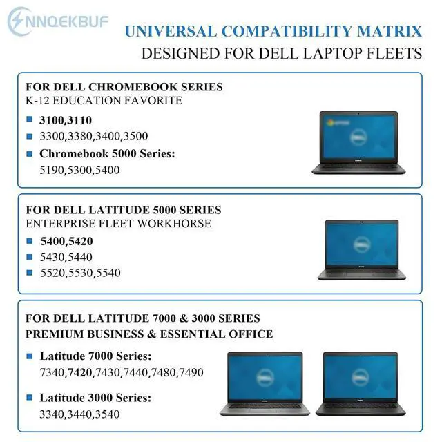 | NNQEKBUF laptop charger | Compatible With Dell Latitude 11 5175 5179 T04E001 2-in-1, Latitude 12 5285 5289 5290 7212 7202 7275 7285 7290 T17G002 T02H001 T02J001 P29S002 2-in-1 ,Latitude 13 3380 3390 3379 7350 7368 7370 7389 7390 2-in-1 E7370 Dell Latitude 14 5490 7490 E7480 E5450 Dell Latitude 15 5500 5590 7569 2-in-1 Dell Latitude 17 7778 2-in-1 Dell Latitude 3390 5285 5289 2-in-1 Dell Latitude 5490 5590 5290-2in1 7390-2in1 |
