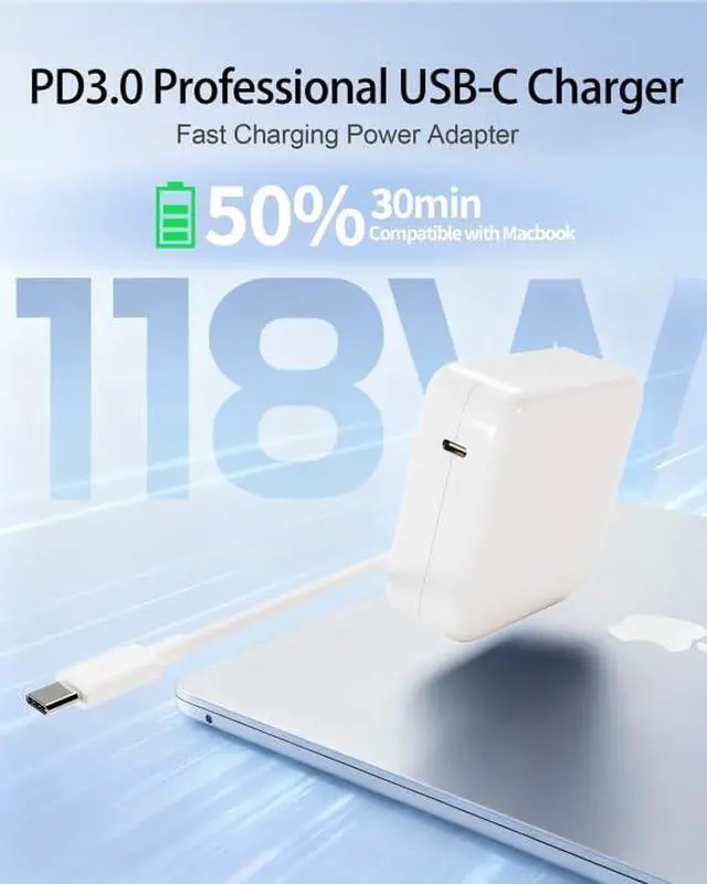 Wide Compatibility Models: 118W usb c port charger compatible with Macbook pro/Macbook air 16 15 14 13 inch, M1 M2 M3 M4, Ipad pro/air 12.9 11 10.9 inch 2020 2023 and all usb c device, laptops and smartphones. The intelligent IC chip automatically detects and delivers optimal power 29W 118W PD for safe, fast charging across all your USB C electronics.