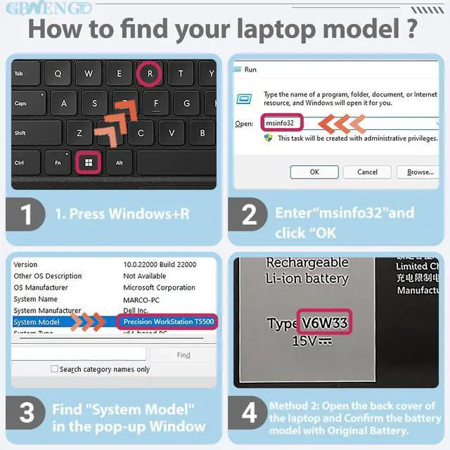 There are two methods that can help you find the correct model of the battery as above picture.