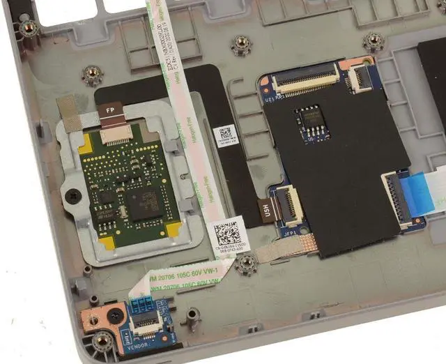 Dell Latitude 5511 / Precision 3551 laptop Palmrest Touchpad Assembly with Dual Pointing layout, smart card reader, and FIPS fingerprint reader.