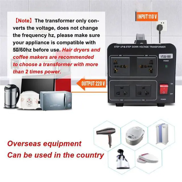 - The transformer only converts the voltage, not the frequency hz. If your appliance is not compatible with 50/60hz, it will have an effect on the usage effect.