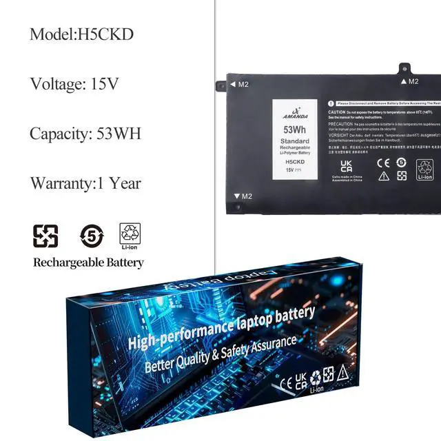 Battery Type: Li-ion Model: H5CKD Voltage: 15V Capacity: 53Wh; New replacement batteries use better battery cells and are made of the highest-quality materials for an overall life expectancy of over a 600 charge cycles.