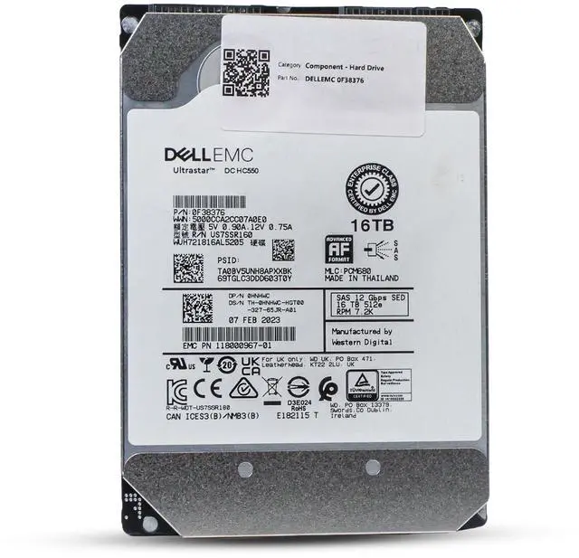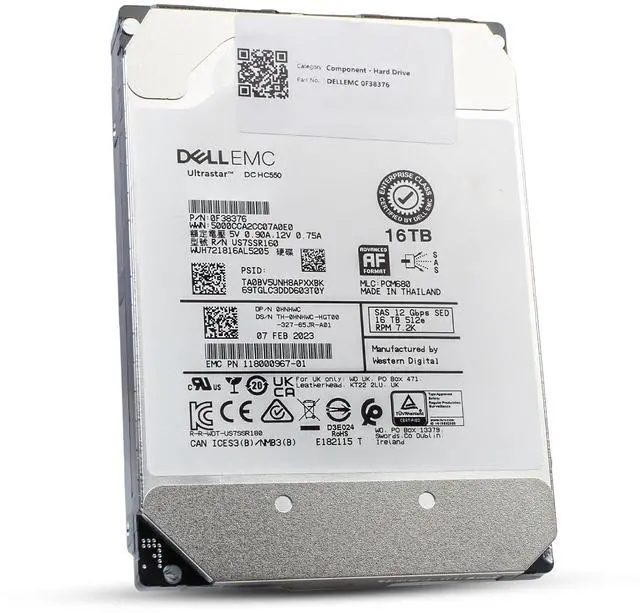 Dell/Western Digital Ultrastar DC HC550 WUH721816AL5205 0F38376 16TB 7.2K RPM SAS 12Gb/s 512e 3.5in Refurbished HDD