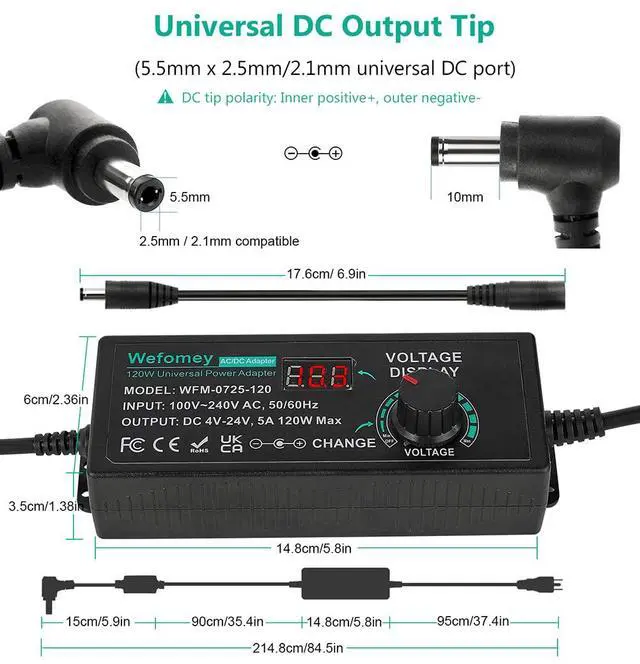 Wide Range of Applications: The 120W all-in-one multipurpose AC/DC adapter fit for many 3~24V small household electronics such as LED strips, 3D printer, smart speaks, wireless routers, DC motor, DVR NVR surveillance system etc. For indoor use only