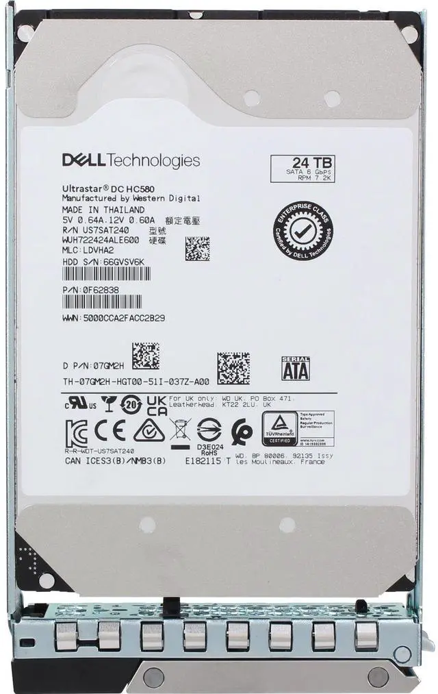 Up for sale is a Dell 24TB 7.2K 512e 6Gbps SATA 3.5 HDD Ultrastar DC HC580 (7GM2H). All components are tested and firmware is updated.