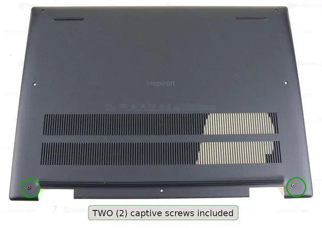 Genuine Dell original Base Bottom Assembly for the Dell Inspiron 14 5430 . This assembly includes the rubber feet and two captive screws.