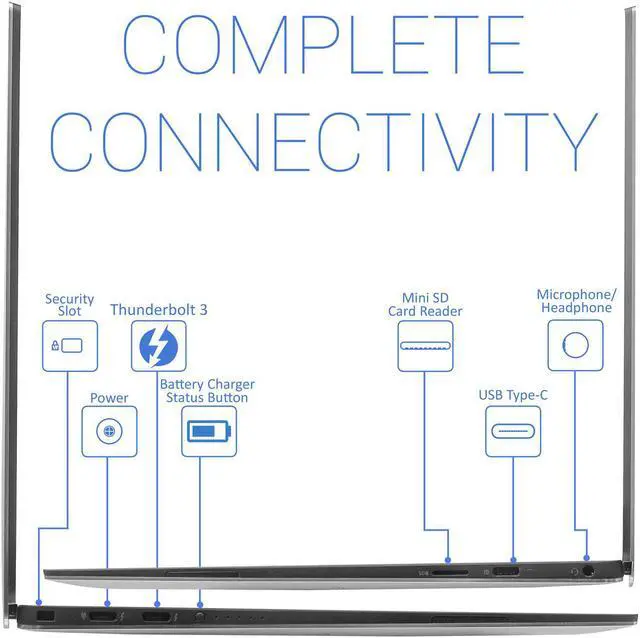 GENERAL INFORMATIONBrand: DellSeries: XPSModel: 7390Form Factor: NotebookOperating System: Windows 10 ProDISPLAYDisplay Size: 13.3"Resolution: FHD (1920 x 1080)Touch: Multi-touch DisplayWebcam: Yes - 720pPROCESSORProcessor Brand: IntelProcessor Type: Core i5-10210UNumber of Cores: 4Base Frequency: 1.60GHzTurbo Frequency: 4.2GHzSmartCache: 6MBMEMORYMemory Capacity: 8GB (Soldered on board)Memory Type: DDR4Memory Form Factor: SO-DIMMMemory Speed: 2400Max Supported Memory: 8 GBSTORAGEDrive Capacity: 256GBDrive Type: NVMe SSD (PCIe)VIDEOIntegrated Graphics: Intel UHD GraphicsAUDIOAudio Tech: HD AudioSpeakers: StereoPORTS & FEATURESVideo Ports: 1x DisplayPort via USB-C, 2x Thunderbolt 3Audio Ports: 1 x Headphone/Microphone Combo JackUSB Ports: 2x Thunderbolt 3Card Reader: Micro SDKeyboard: BacklitCOMMUNICATIONSWi-Fi: Wi-Fi 5 (802.11ac)Bluetooth: Bluetooth 4.1POWERAC Adapter: 45-wattBattery: 4-cell lithium ionBattery Life: > 5 hoursPHYSICAL SPECIFICATIONSLength: 7.8 in.Width: 11.9 in.Height: 0.46 in.Weight: 2.7 lbsColor: Silver
