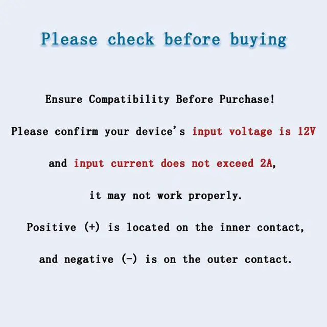 - Note: Compatible with devices that require 12V and no more than 2A (jack is center positive).