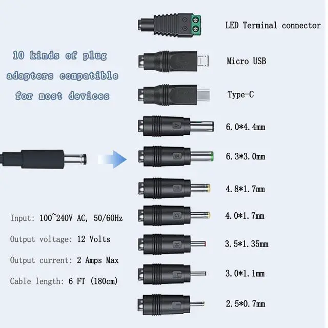 - 12V 2A Power Supply Adapter x 1, Fit for 5.5*2.1mm 5.5*2.5mm
