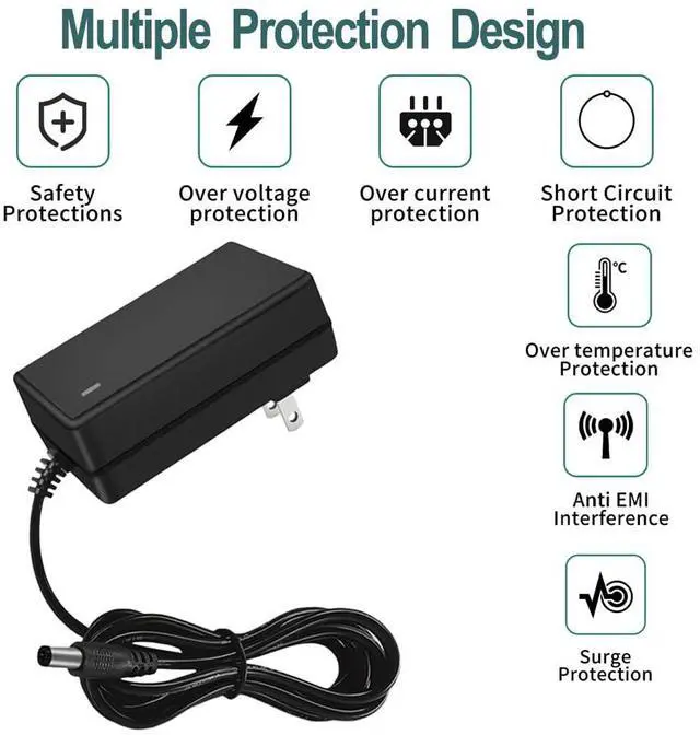 The output connects to a 2.1mm-2.5mm DC plug.