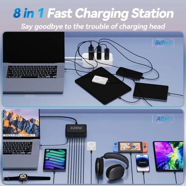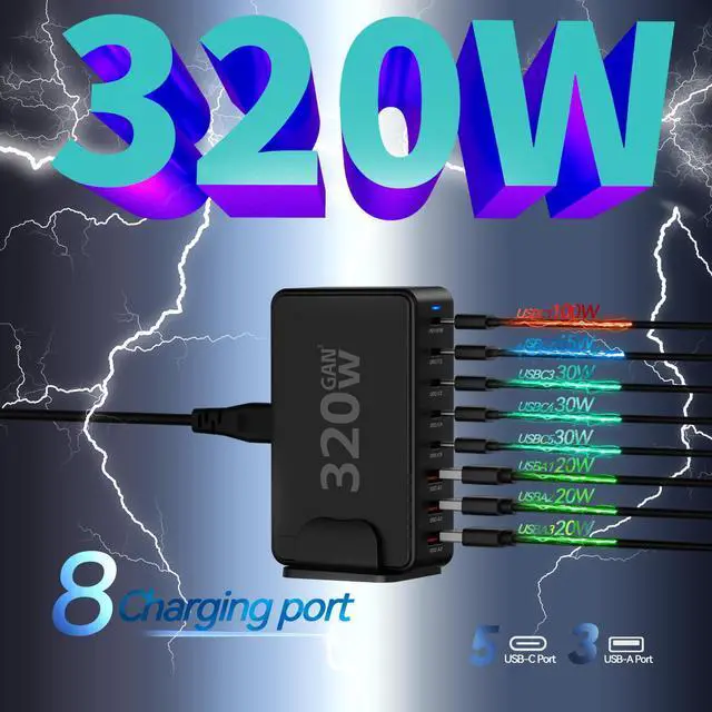 320W with8-Port USB C Charging Station