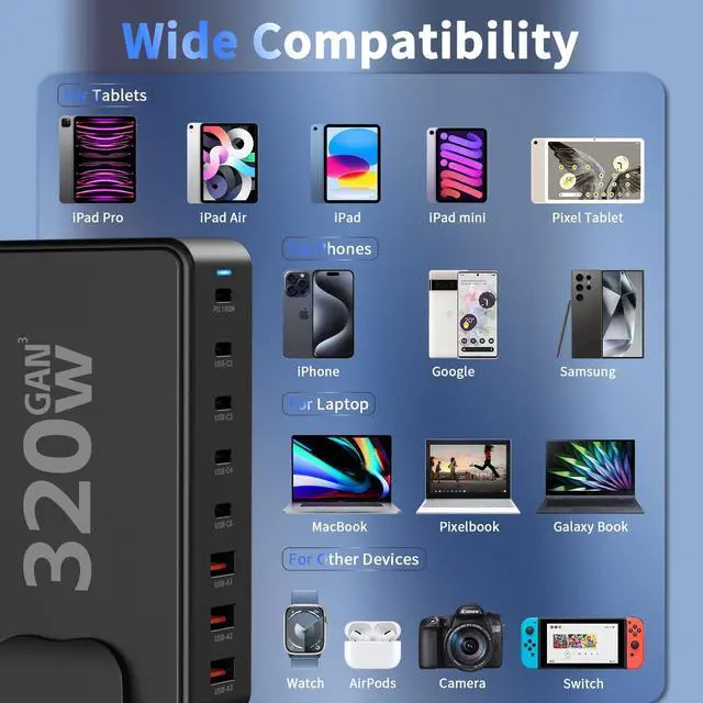 | Multiple Devices | 8 In 1 USB C Charger Block | 6-in-1 Wireless Charging Station | 3 in 1 Wireless Charging Station | 3-in-1 MagSafe Charging Station |