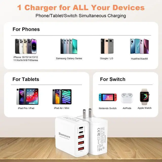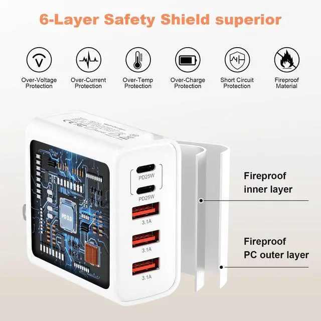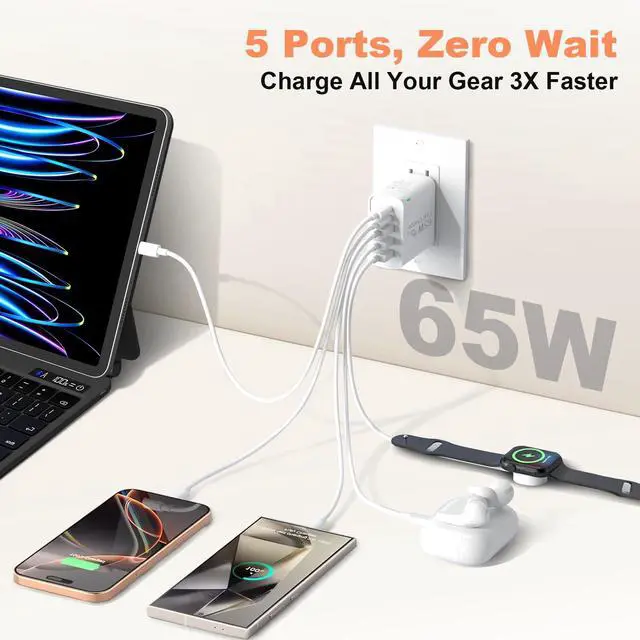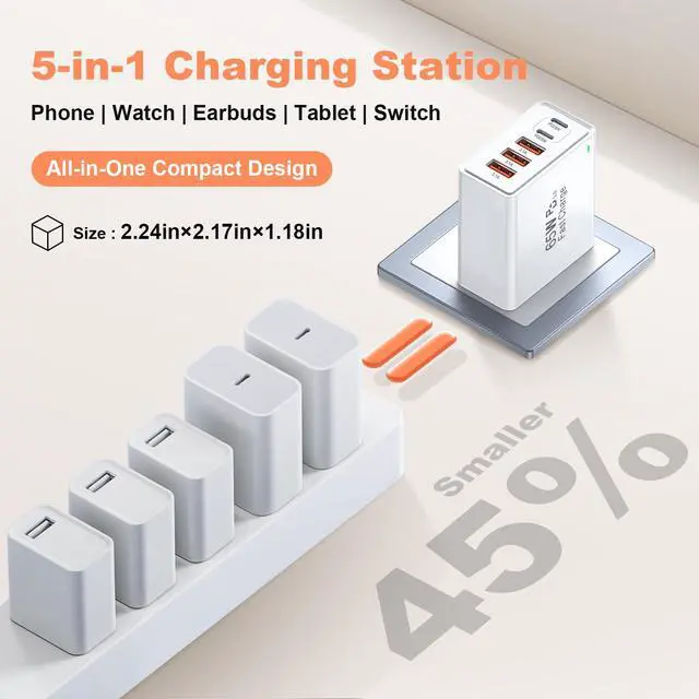 Ultimate 65W Charging Powerhouse Experience blazing-fast charging with our 2-Pack 65W 5-Port USB C Wall Charger Block - the smart solution for multi-device users. Engineered with PD3.0 & QC4.0 dual-chip technology, deliver 3x faster charging than standard adapters (0-50% in 18 mins for iPhone 16 Pro Max). charging blocks multiple ports cruise approved outlet with usb ports double usb charger block Multiport Rapid Type C Cube dual usb c charger block multi usb charging station multi usb plug multiple ports multiple usb charger station usb charger block usb adapters for multiple devices usb multiport charger wall chargers for multiple devices Pro-Grade Charging Architecture 2×USB-C + 3×USB-A Smart Ports: Auto-detect devices to deliver optimal power (5V/3A~20V/3.25A) Dynamic Power Distribution: Single Port: Max 20W (USB-C1) Dual Ports: 20W+18W (C1+C2) 5-Port Full Load: 20W+18W+15W+10W+12W Precision-tuned for latest devices: Universal Compatibility iPhone 16/15/14 Pro Max/Plus (Max 27W PD) Galaxy S24 Ultra/S23 FE (45W Super Fast Charging 2.0) iPad Pro M4/Air 6 (30W USB-C Power Delivery) AirPods Pro 3/MagSafe Battery Pack (7.5W Qi) Switch/Steam (15V/3A Gaming Mode) Military-Grade Safety System 8-Layer Protection: Over-voltage/current/short-circuit + Temperature control + Surge protection FCC/CE/RoHS certified with flame-retardant PC shell Intelligent night mode (auto dim LED when dark) Global Travel Companion Universal 100-240V voltage + Foldable US plugs Desktop-grade stability (non-slip silicone base) Daisy-chain capability (charge power bank while charging devices) What You Get 2×65W USB C Charger Blocks 12-month worry-free warranty + 24/7 US-based support Search Optimization Keywords: 65W 5-Port USB C Wall Charger Block PD3.0 QC4.0 Fast Charging Brick Multi Port Charger for iPhone 16 Pro Max Galaxy S24 Ultra Charger Block 65W Desktop Charging Station with 3 USB-C Ports 2 Pack GaN Wall Plug Power Adapter Travel USB Charger Block with Safety Protection Fast Charger for iPad Pro M4 and AirPods Pro usb c fast charger block usbc block usbc charger block usb c block type c charging block usb c charging block
