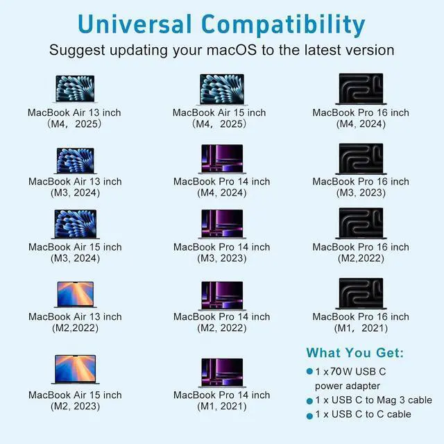 AC 70W USB C Power Adapter+USB C to Mag 3 Cable