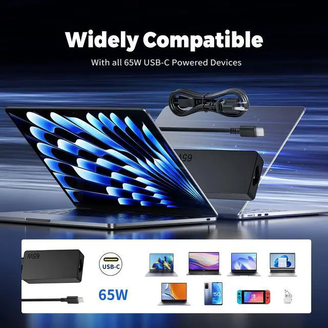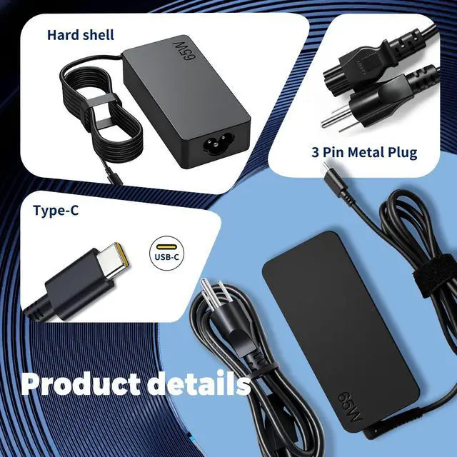 65W PD Fast ChargingOutput Max - 65W 20V/3.25A, 20 V/3 A, 20V/2.25, Input: 100V-240V, 50-60Hz. Watt: 65.0 Watt Compatible with USB Type C devicesYou will get 1 AC Adapter and 1 Power Cord