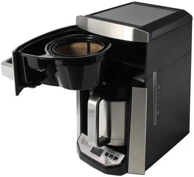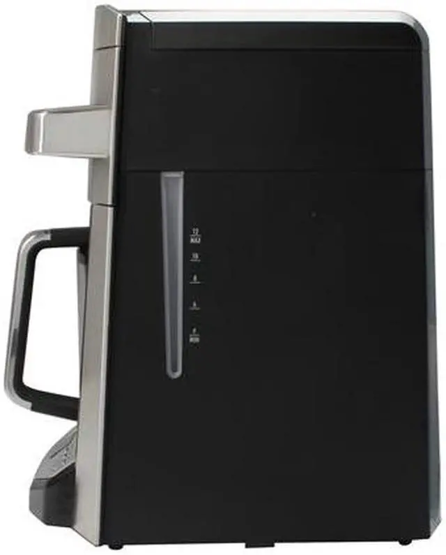 Easily fill the water tank and ground coffee filter without moving the unit. Open the door using the handle, pour water in the channel and put grounds in the coffee filter.