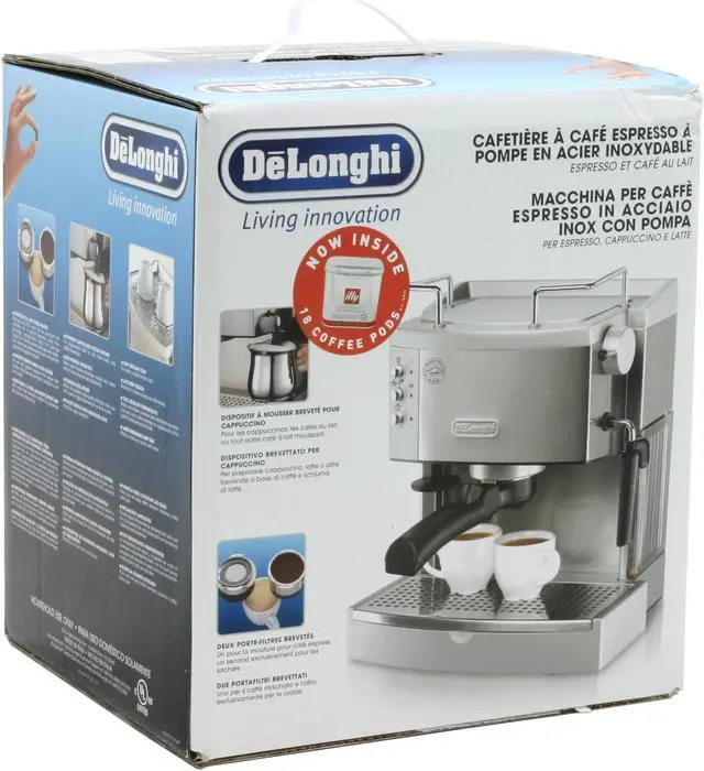 The DeLonghi EC701 Espresso Maker makes it simple to get a perfect cup of espresso, or to make your favorite espresso drinks at home! The “Sempre Crema” filter holder ensures perfect crema on every cup of espresso you brew, so it’s ready to drink with a simple twist of lemon peel. A filter adaptor also lets you brew E.S.E. coffee pods. The stainless steel unit features a cup-warming shelf on top, so your perfect cup of espresso isn’t ruined by a cold cup! The removable 44-ounce water reservoir lets you keep brewing, without having to stop for frequent refills, and the self-priming pump gets you up and running in no time.