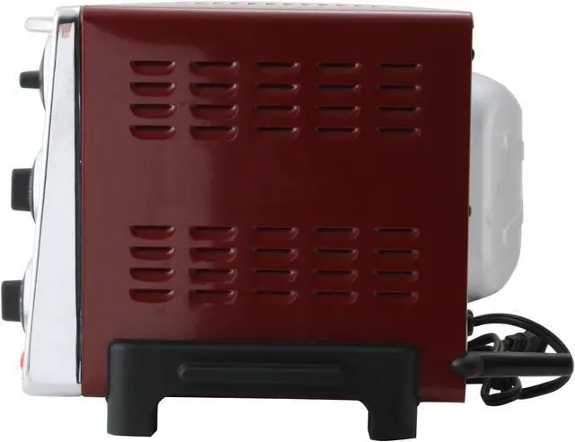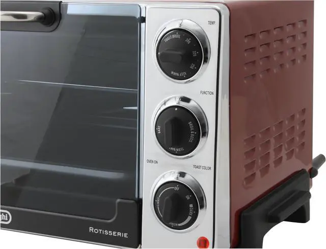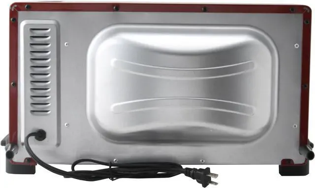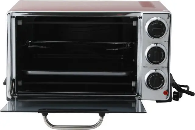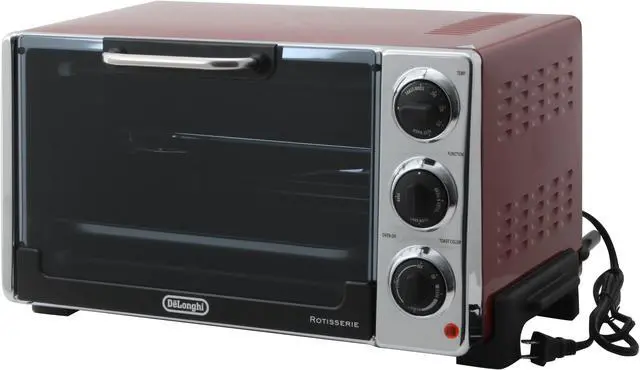 | Features | Large (20-liter, 0.9 Cu. Ft.) Cavity Fits 12" Pizza The Interior Is Large Enough To Cook An Entire 12" Pizza, Bake An Entrée Or Side Dish. Make A Meal For The Whole Family Right On Your Countertop. Large 6-slice Toast Capacity Lets You Make Toast, Bagels Or English Muffins. The Toast Color Selector With Automatic Shut-off Allows You To Choose Settings From Light To Dark For Toast Just The Way You Like It. Rotisserie Spit Is Easy To Detach, Load And Clean. It Is Used In Conjunction With Bake Pan For Convenient Cleaning. Multiple Cooking Functions This Is The Ideal Multi-function Family Oven. Choose Bake, Broil, Toast, Slow Bake, Rotisserie Or Keep Warm For Precise And Convenient Cooking. Non-stick Interior Makes Cleanup Quick And Effortless Removable Crumb Tray Allows You To Easily Dispose Of Crumbs And Other Food Particles. Sleek, Attractive Design With Red Housing And Chrome Frame. Easy-to-use Controls Allow You To Easily Control Cooking Program And Temperature. Designed And Engineered In Italy |