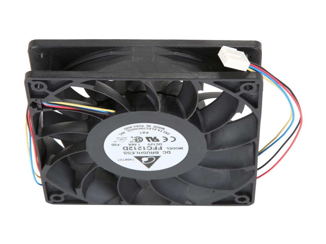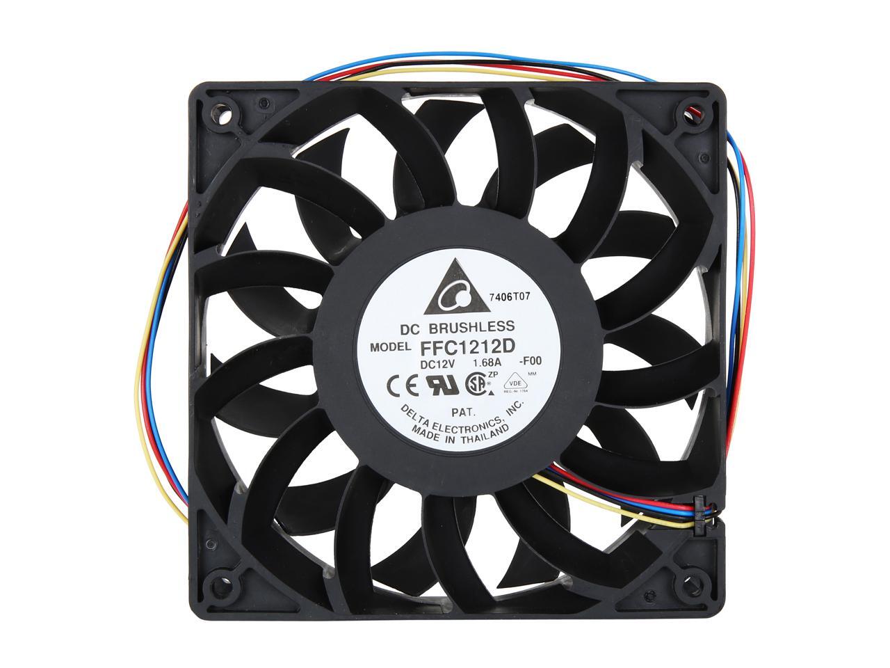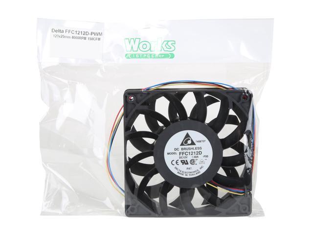 Delta FFC1212D-PWM High Quality Brushless DC Air Cooling Fan, 4000 RPM, 150 CFM, 44 dBA, 120x120x25mm, Dual Ball Bearing, PWM Fan Control