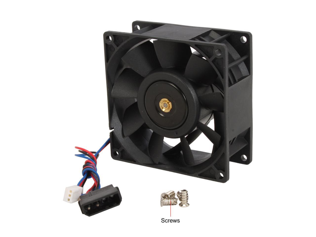 | Features | Rated Voltage: 12 VDC Operating Voltage Range: 7 - 13.2 VDC Input Current: 3.10 Amp (maximum 3.72A) Input Power: 37.2W (maximum 44.64W) Maximum Air Pressure: 46.21 mmH2O or 1.819 inchH2O The Delta PFB0912DHE-F00 is an ultra-high speed, heavy-weight class cooling fan at 92 x 92 x 38mm. It packs an incredible amount of air flow of 175.03 CFM at 8000 RPM, or 4.957 cubic meter per minute, which is much higher than that from most 120mm cooling fans. Life expectance is 50,000 hours (or 11.4 years if you operate the fan 12 hours a day) at 40 Degree C with 15 - 65% RH, all thanks for industrial grade materials plus top notched, high quality dual ball bearing. This is an excellent cooling fan for industrial computing environment where quality and cooling capacity is of top concern. For a balance of noise level and cooling capacity, you can use a fan controller to adjust fan speed when needed, just make sure the fan controller can supply enough power for the fan. Operating temperature is -10 to +60 Degree C with 5 - 90% RH. Protection includes Over Current Shut-Down Protection when rotor is locked, and Polarity Protection which can withstand reverse connection on positive and negative leads. This fan does not contain ozone depleting substances such as PBBs, PBBOs, CDCs, PBBEs, PBDPEs and HCFCs. This fan has 3 wires lead with fan speed sensor output, and is wired with a 3 pin fan connector. To reach its maximum speed, you will need to supply 3.10A or 37.20W of power at the minimum. Most motherboards' 3 pin headers may not be able to supply enough power. You can either use the included cable adapter to power the fan through a Molex 4 pin header from a common PC power supply, or you can power the fan by a fan controller (just make sure it can supply enough power for the fan) through the 3 pin connector of the fan. Wire lead is approximately 13.50 inches long. |