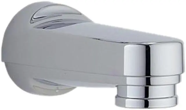 Delta Tub Spout - Chrome tub spout with pull-down diverter. Sweat onto 1/2 In. C.W.T. or thread onto 1/2 In. IPS. 6-1/8 In. total length. - Size: 6-1/8 In., Finish: Chrome, Diverter: Pull-Down, Material: Plastic, Pkg Qty: 1, Package Type: Card