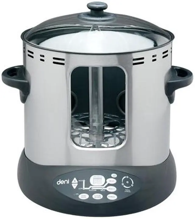 | Features | Center heating element allows for faster cooking Roasts from inside-out and outside-in for juicy, tender foods Can hold up to a 5-lb chicken or 8-lb roast Cook roasts, chicken, turkey, fish or kebabs Makes food crispy on the outside and juicy inside Cooks food 20% faster than a conventional oven Cool Touch handles and knob Slide out base allows easy food preparation away from heat source Non-stick interior is easy to clean Glass lid and front allow you to monitor food while cooking Rotating multi-heating element design ensures even heating Four heating elements: three heaters on the sides, one in the center Digital timer with auto shut-off Electronic LCD display Dishwasher safe removable parts |