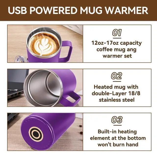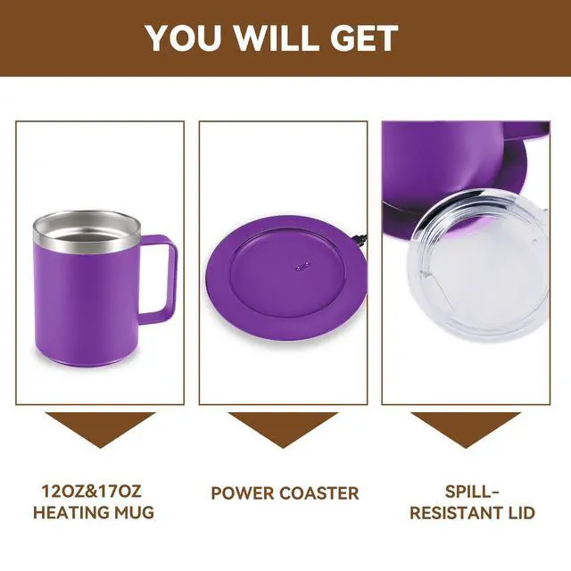 This coffee mug warmer set for desk includes a heated mug, power base, and storage bag. It's a great birthday or holiday gift for your dad, mom, or coffee lover.