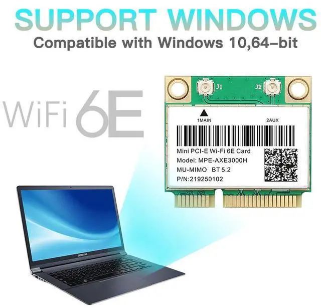 With a mini PCI-E interface, this WiFi 6 Half mini PCle networking card is easy to install in compatible devices such as notebooks and mini PCs. Almost all computers with mini PCl Express interfaces are compatible , such as Samsung/Dell/Sony/ACER/ISUS/MSI/Clevo/Terransforce/Hasee etc, but do not support all IBM/Thinkpad/Lenovo/HP laptops and and AMD Motherboard.
