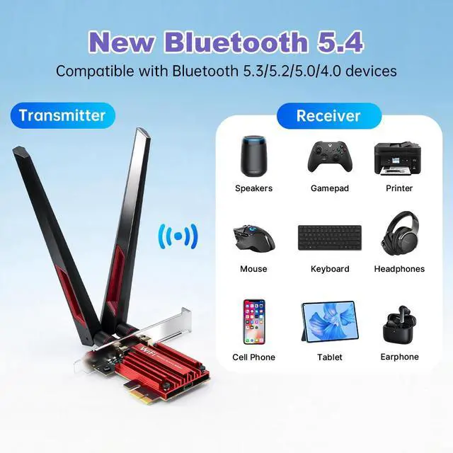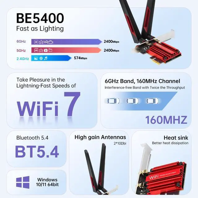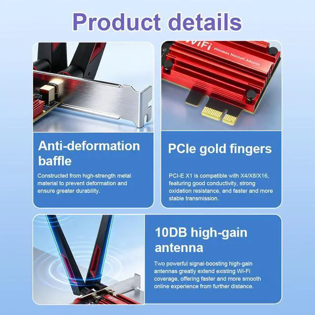 - Fits standard PCIe x1/x4/x8/x16 slots. Includes both low-profile and full-height brackets for desktop cases. Compatible with Windows 11 (64-bit) and Windows 10 (64-bit), supporting Intel and AMD platforms. Not compatible with Mini PCIe or M.2 CNViO2 slots.