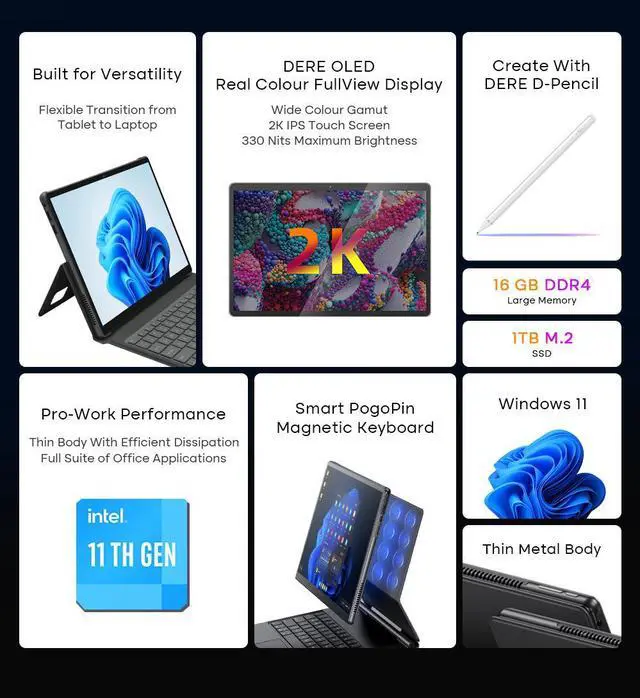 - The T30Pro 2-in-1 laptop is equipped with Intel's 11th Celeron processor N5095, with a maximum frequency of 2.9GHz, which easily meets daily office needs.