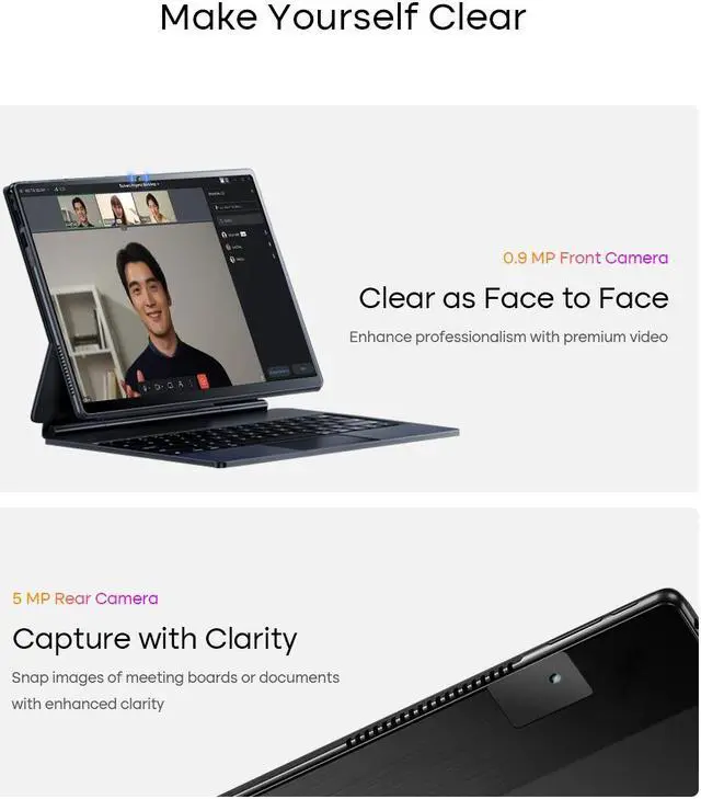 - T30Pro has dual front and rear cameras, can meet the needs of video conferencing, usually equipped with a magnetic keyboard, disassembly link and its convenience, even if the tablet, but also a laptop, order is also a free stylus.