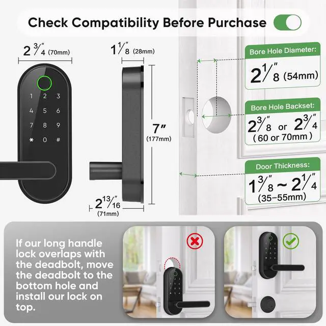 [Security and Anti-Theft] Features like auto-locking, privacy mode, and anti-theft alarms ensure your home's safety; get smart app alerts for any unwanted entry attempts for added peace of mind.
